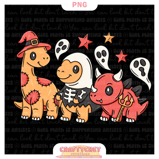 Cutesy Spooky Dinos: Red (Seamless + PNG)