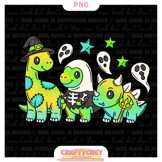 Cutesy Spooky Dinos: Green (Seamless + PNG)