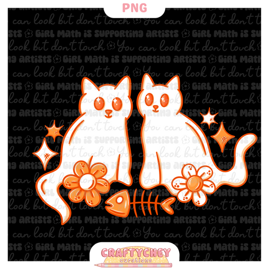 Orange Ghost Kitties (Seamless + PNG)